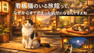看板猫のいる旅館がなぜ心に残るのかを、共感と情景でやさしく綴る文章記事。静かに休みたい旅に寄り添います。