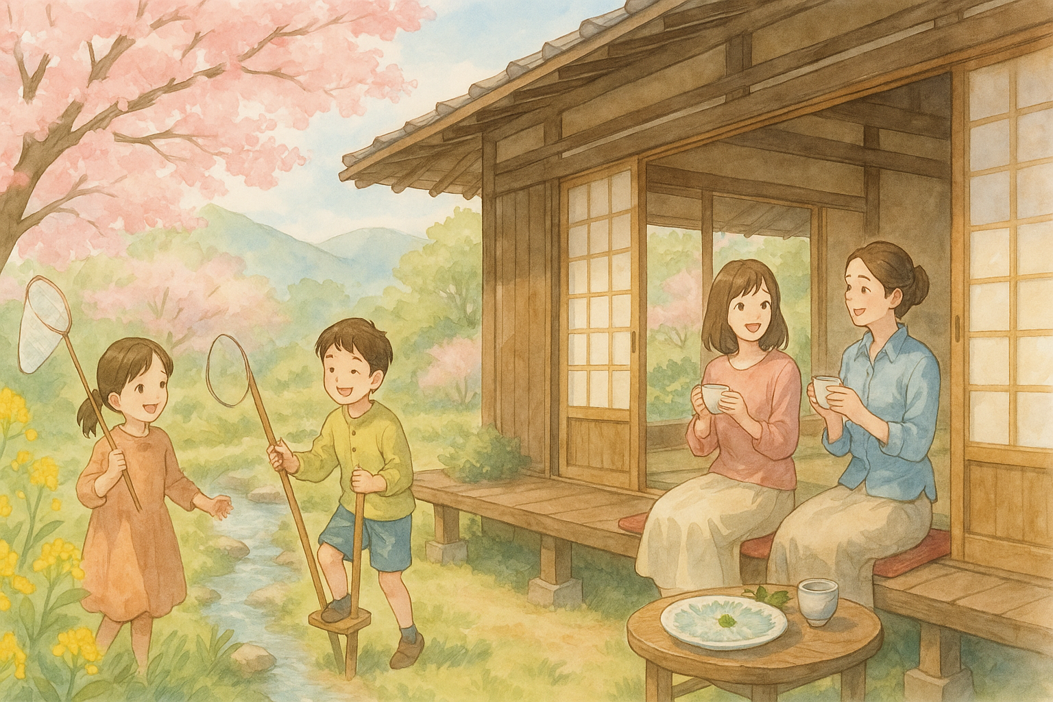 🌿 春には里山の新緑と一緒に、家族のゆったり時間を満喫できます。