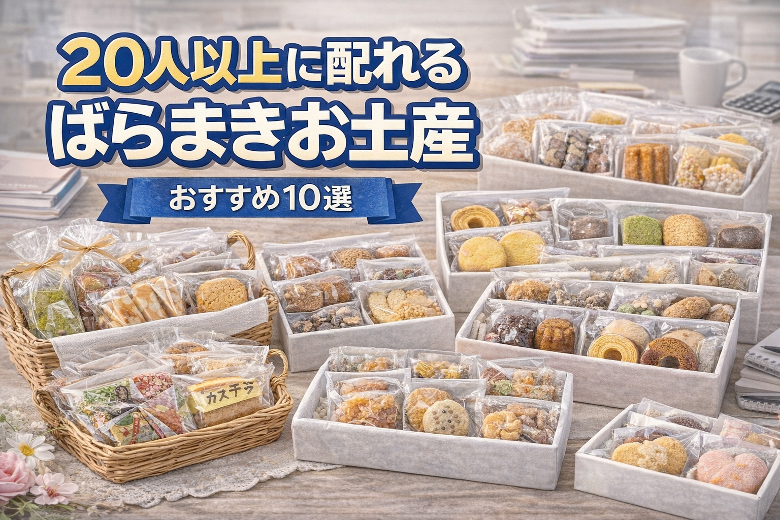 20人以上の職場・学校・イベントなどで配るばらまきお土産を探している方へ。「数が足りる?」「配りやすいものは?」と迷うことも多いですよね。