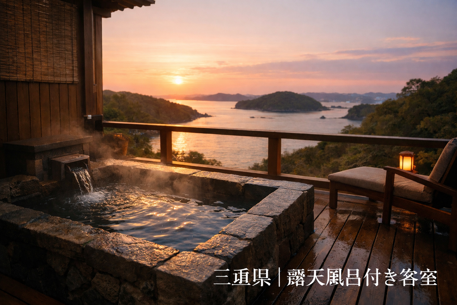 三重県には、伊勢志摩や鳥羽を中心に、自然に囲まれた場所で部屋に露天風呂を備えた宿がいくつもあります。
