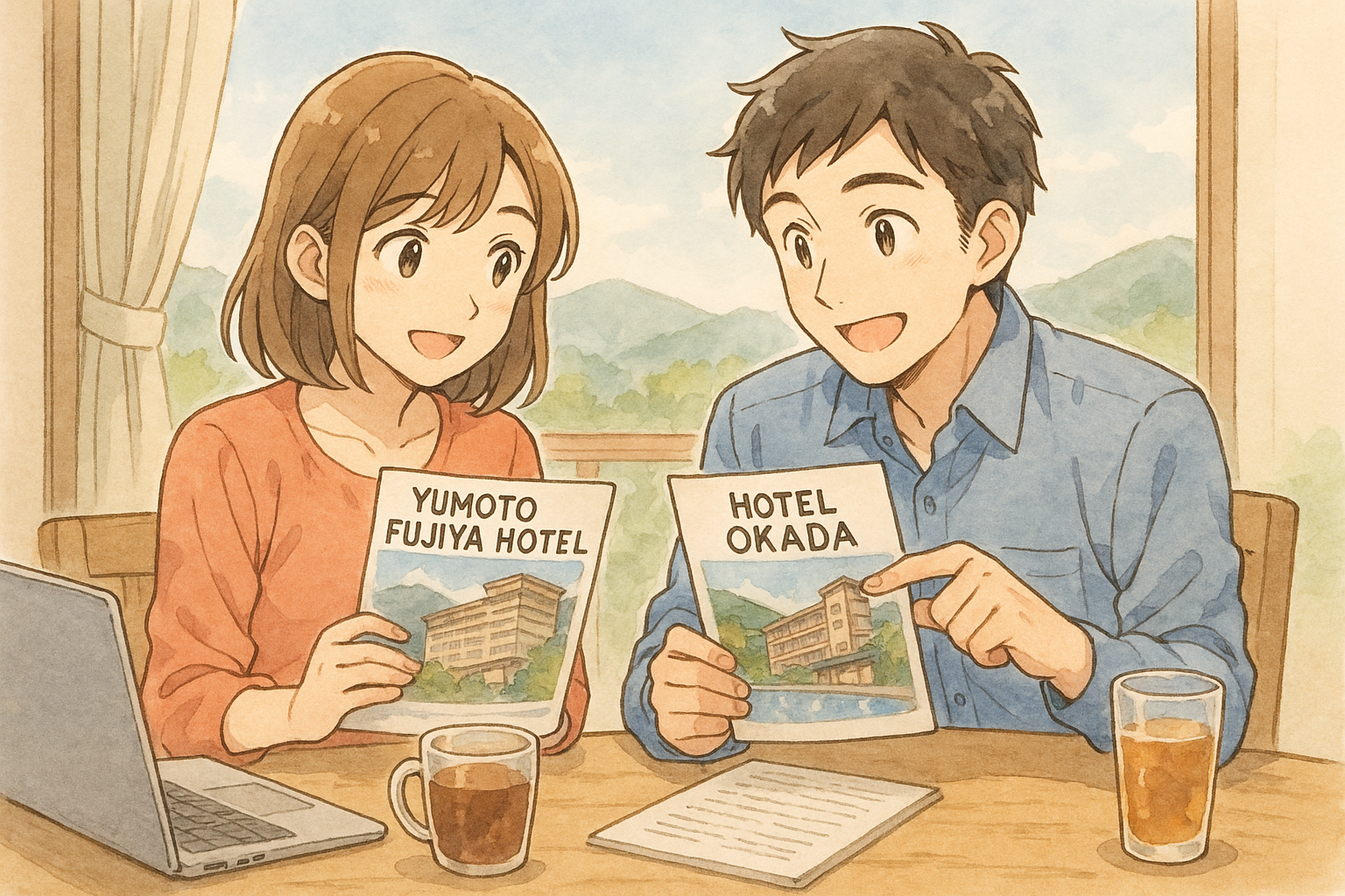 アクセスや観光の拠点として便利な湯本富士屋ホテルと、館内施設の豊富さで楽しめるホテルおかだ。それぞれの魅力を活かして、旅行の目的に合わせて選びましょう。